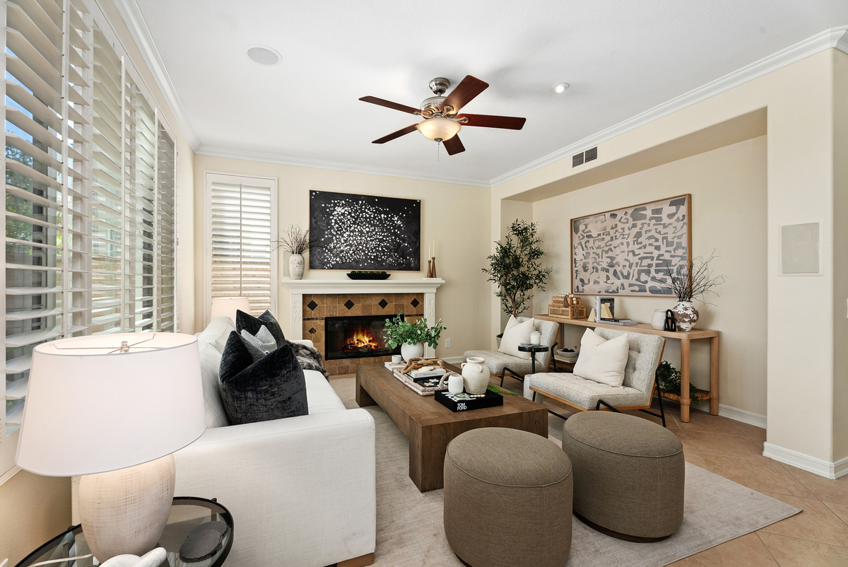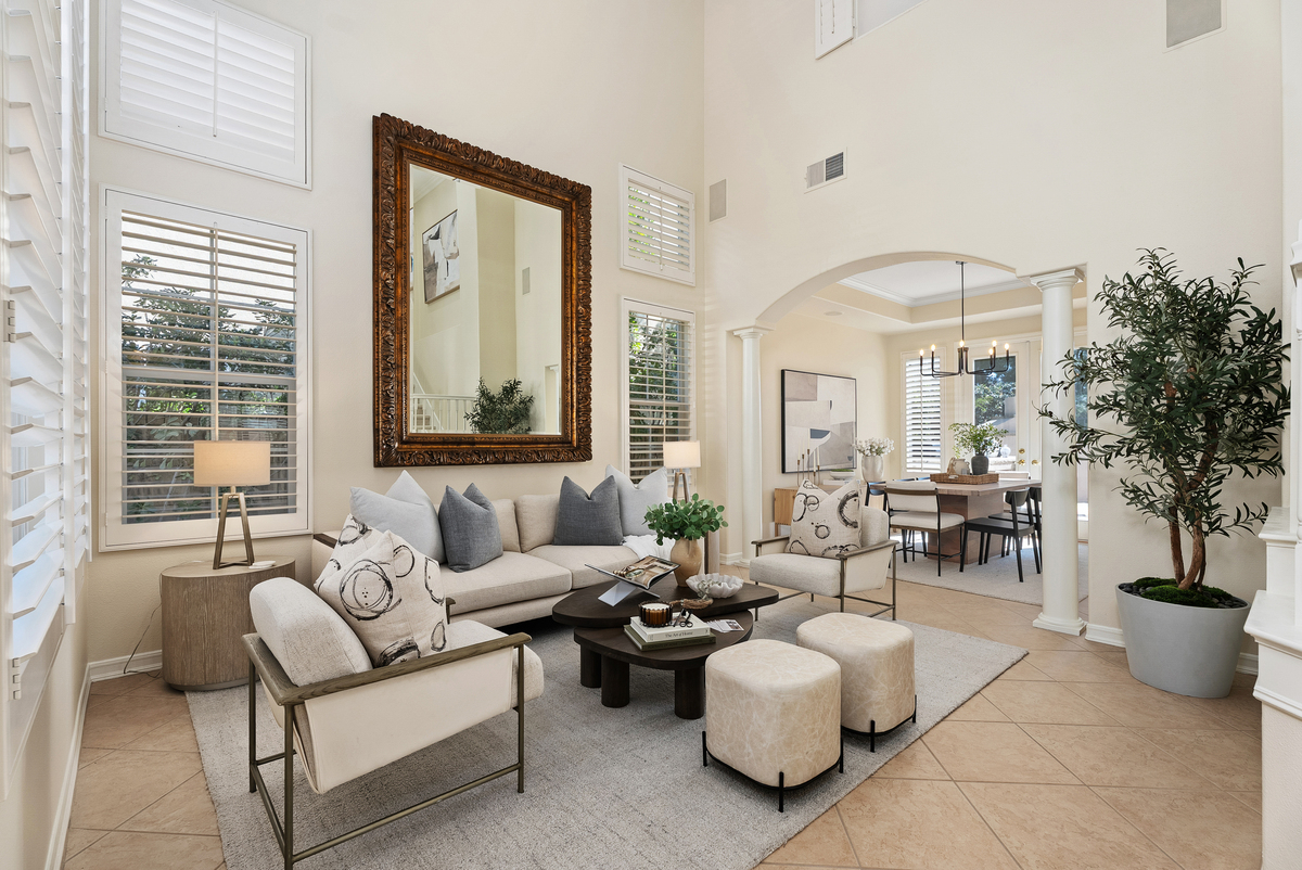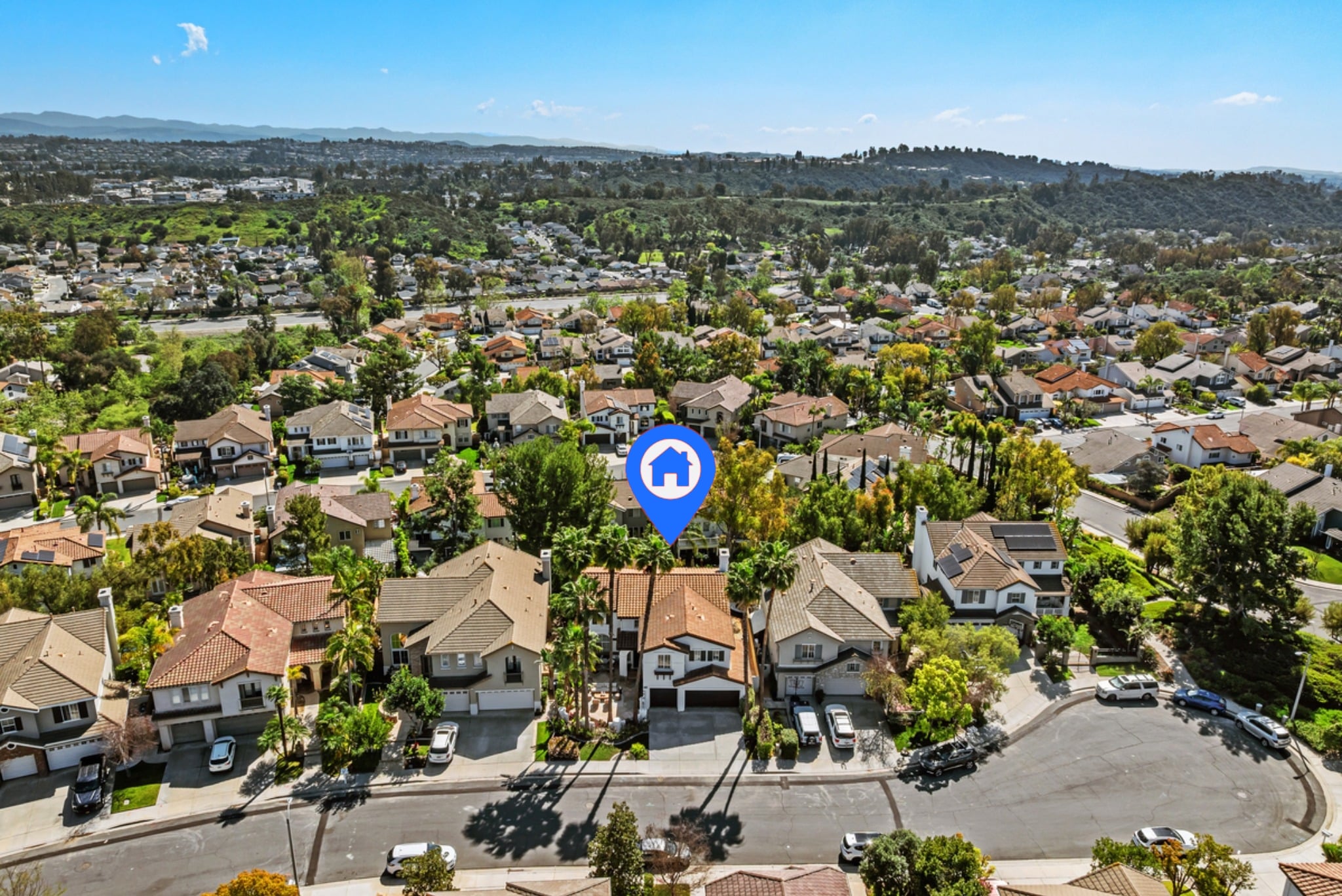 Welcome to 20904 Parkside, an exceptional hilltop residence in the intimate Parkside community of Lake Forest, offering sweeping views of the Saddleback Mountain range, rolling hillsides, sunrises and twinkling lights. This recently refreshed home sits on a private cul-de-sac and showcases classic Santa Barbara-inspired architecture and soaring palm trees and Xeriscape landscaping. Spanning approximately 3,179 square feet, it features 5 bedrooms, 3 bathrooms, a bonus room, and a 3-car garage with a versatile floor plan designed for both everyday living and large gatherings. Entertain family and friends in 3 distinct areas of the yard: relax the oversized front courtyard with a cascading waterfall, watch the 4th of July fireworks from the huge view balcony or host a BBQ in the rear yard while enjoying the outdoor fireplace. Interior highlights include soaring two-story ceilings in the living room, formal dining room with French doors, a separate family room with fireplace, and a main-level bedroom ideal for guests which is currently shown as a home office. A beautiful kitchen offers abundant cabinetry with black accent pulls, granite countertops and custom stone backsplash, center island, raised counter bar seating, desk and a breakfast nook with French doors opening to the backyard. Upstairs, the expansive primary suite with views features a private retreat with fireplace and French doors leading to the huge view deck, dual walk-in closets, spa-style bathroom with soaking tub and separate shower. Three additional bedrooms, a Jack & Jill bath and a spacious bonus room complete the upper level. The private backyard is designed for Southern California indoor-outdoor living and features a built-in fireplace, island with gas BBQ, a large covered patio and a special corner seating area, perfect to relax and the quiet. Additional upgrades include fresh interior paint, new carpet, Plantation shutters, speakers inside and out, rich crown molding, granite counters, 9-foot ceilings, dual-zone HVAC, and an oversized 3-car garage with storage. Located in a charming 42-home neighborhood with low HOA, low taxes, and no Mello-Roos, just steps to the community park and minutes from sports parks, shopping, dining, major freeways, and John Wayne Airport. Start planning your summer parties here today!